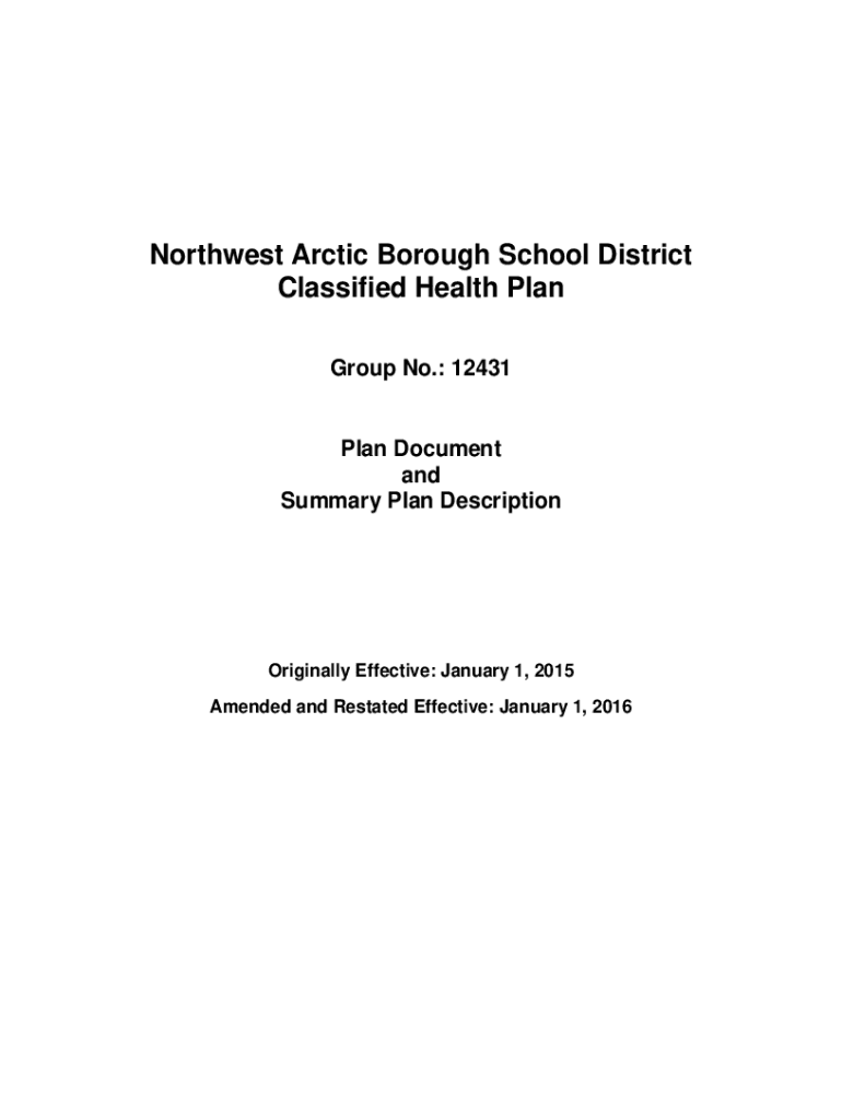 Northwest Arctic Borough School District Classified Health Plan Group No.: 12431Plan Document and Summary Plan DescriptionOriginally Effective: January 1, 2015, Amended and Restated Effective: January