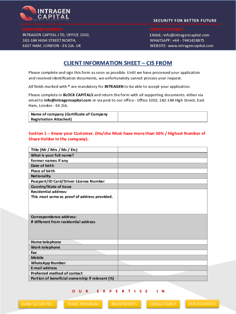 Get the free Client Information Form. Need to be Filled by the Applicant
