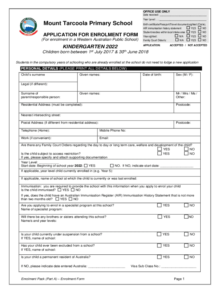 Get the free YEARS 1 - 6 APPLICATION FOR ENROLMENT FORM (For ...