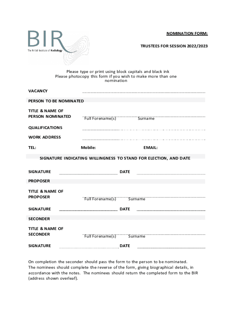 NOMINATIONFORM: TRUSTEESFORSESSION2022/2023 Pleasetypeorprintusingblockcapitalsandblackink Please photocopy thisformifyouwishtomakemorethanone nomination VACANCY PERSON DENOMINATED TITLE&NAMEOF PERSON