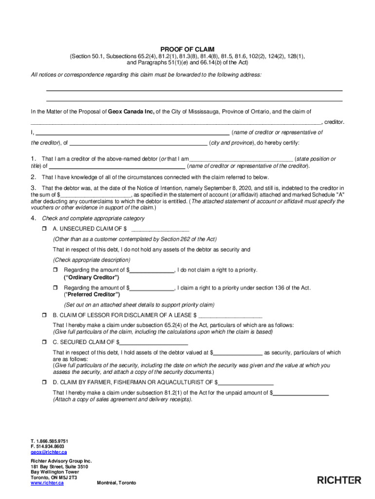 Estate No. 322670414 To the Creditors of Geo Canada Inc. Notice requiring a person to prove a claim (sec. 149) In the matter of the Proposal of Geo Canada Inc. In the City of Mississauga of the Province