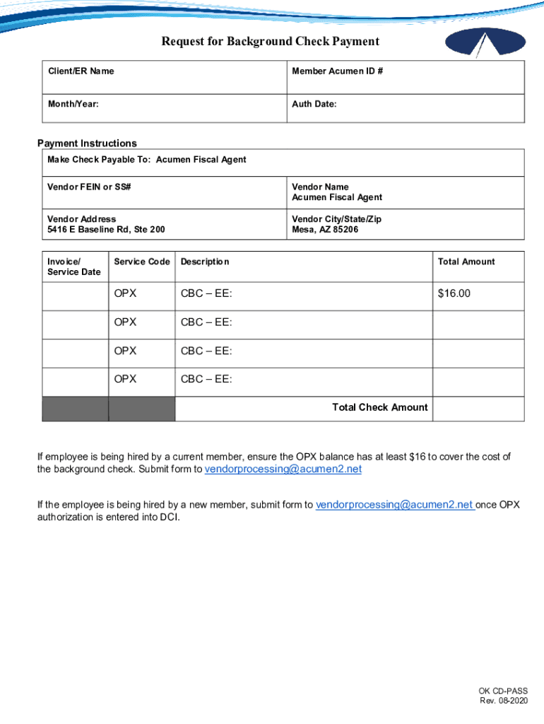 Get the free Request for Background Check Payment - Acumen Fiscal Agent