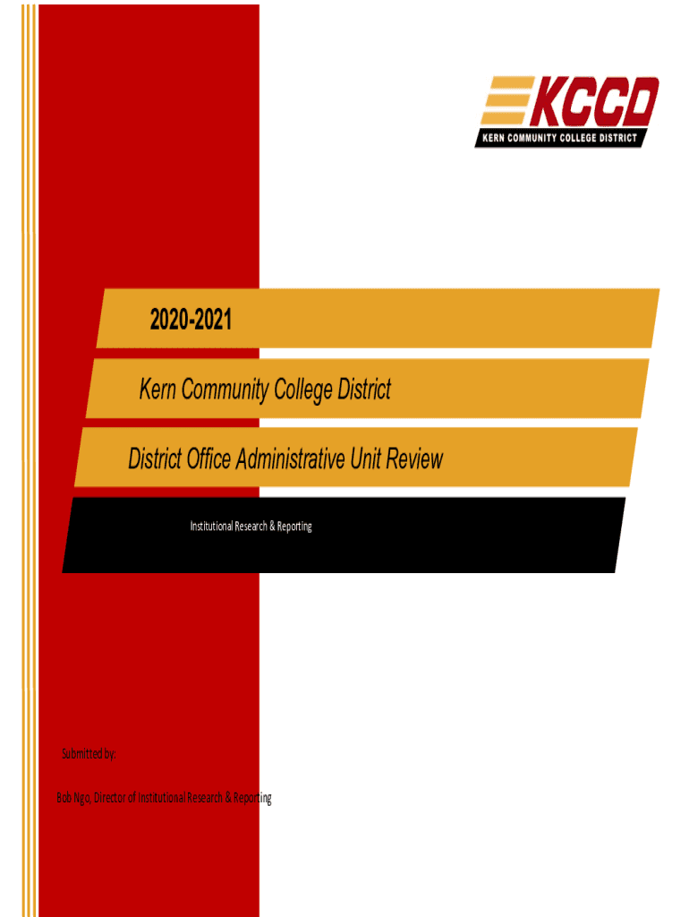 20202021 Kern Community College District Office Administrative Unit Review Institutional Research & ReportingSubmitted by: Bob NGO, Director of Institutional Research & Reporting202021 District Office