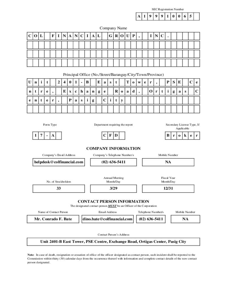 SEC Registration Number 1 9 9 9 1 0 0 6 5 Company Name C O OF I N A N C I A LG R O U P, I N C. Principal Office (No./Street/Barangay/City/Town/Province) U n ITN t r e2 4 0 1 B, E a SE x c h an n gee