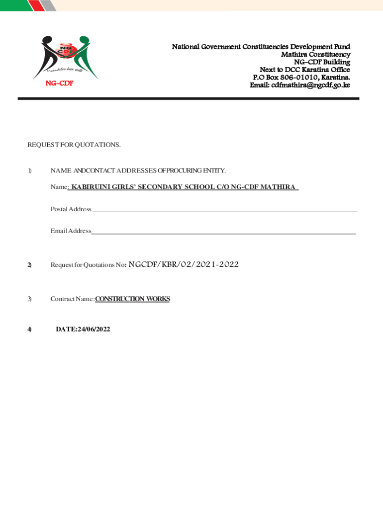 Email: cdfmathira@ngcdf.go.keNGCDFREQUEST FOR QUOTATIONS.1)NAME