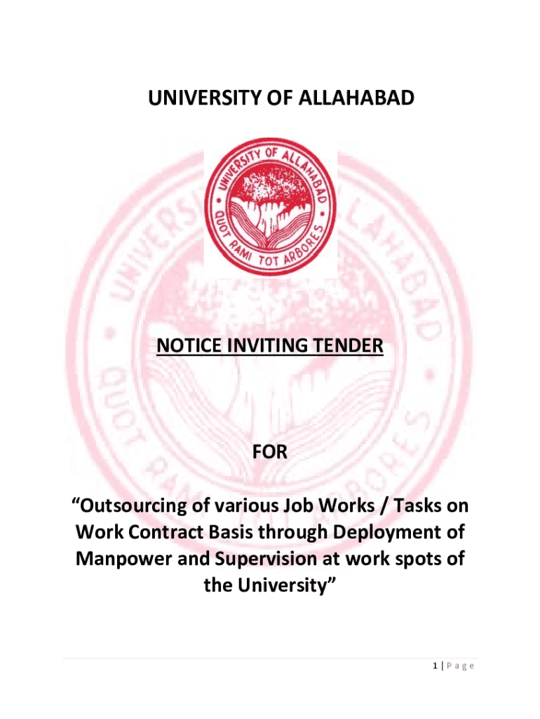 Get the free NOTICE INVITING TENDER FOR Outsourcing of various Job ...