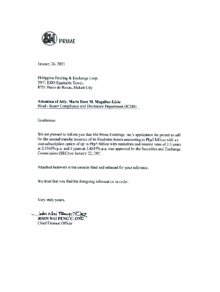 C005152021SECURITIES AND EXCHANGE COMMISSION SEC FORM 17C CURRENT REPORT UNDER SECTION 17 OF THE SECURITIES REGULATION CODE AND SRC RULE 17.2(c) THEREUNDER1. Date of Report (Date of the earliest event