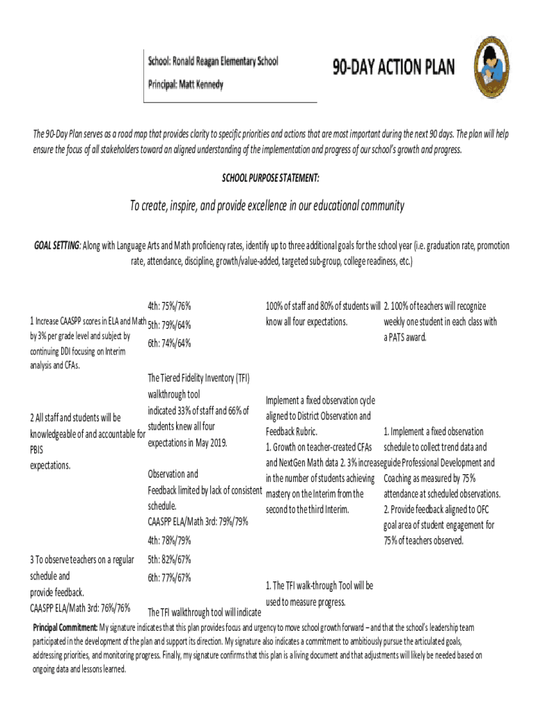 The 90Day Plan serves as a road map that provides clarity to specific priorities and actions that are most important during the next 90 days. The plan will help ensure the focus of all stakeholders