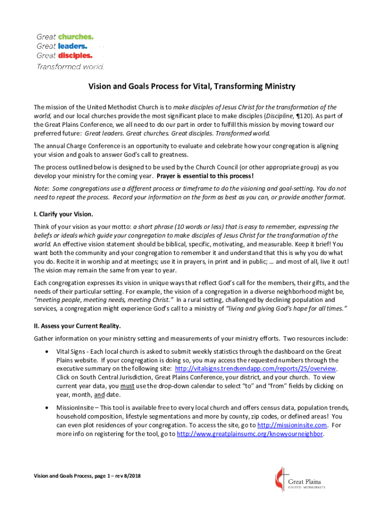 Vision and Goals Process for Vital, Transforming Ministry The mission of the United Methodist Church is to make disciples of Jesus Christ for the transformation of the world, and our local churches