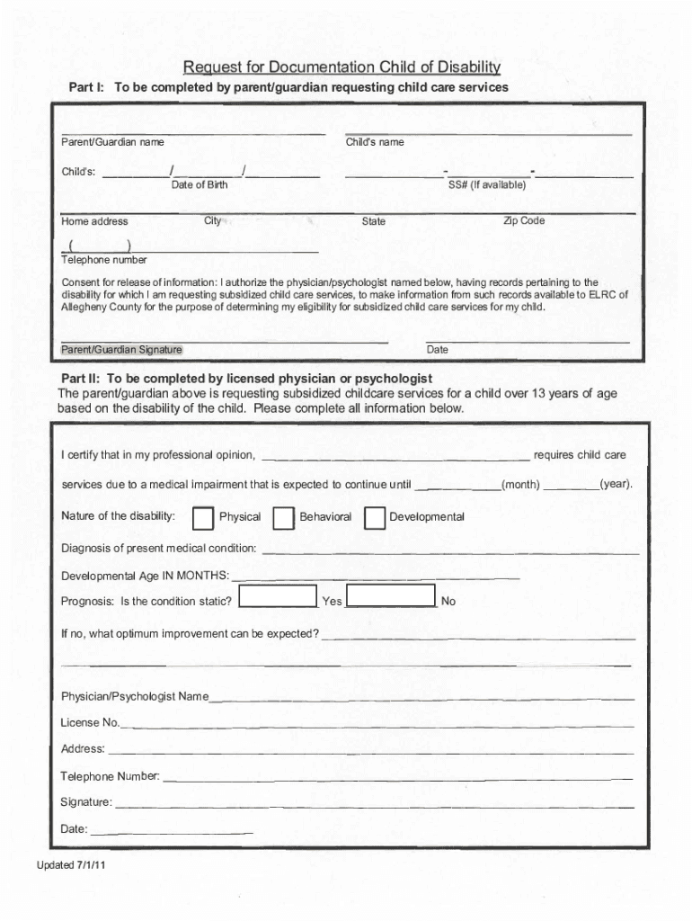 Part I: To be completed by parent/guardian requesting child care servicesChild\'s apparent/Guardian name