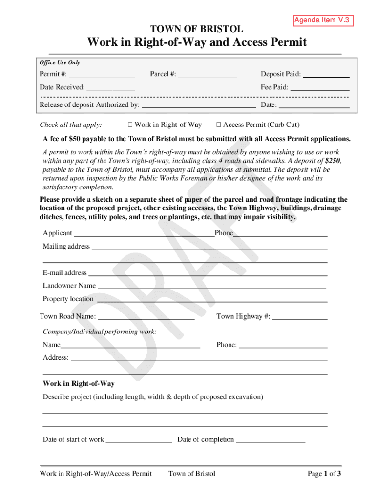Agenda Item V.3TOWN OF BRISTOLWork in RightofWay and Access Permit
