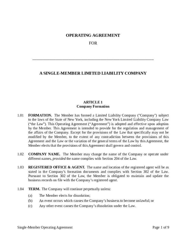 Get the free New York State Single-Member LLC Operating Agreement