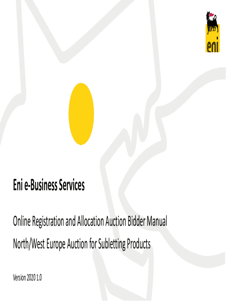 ENI business Services Online Registration and Allocation Auction Bidder Manual North/West Europe Auction for Subletting Products Version 2020 1.0Dear User, the following handbook shows you the Online