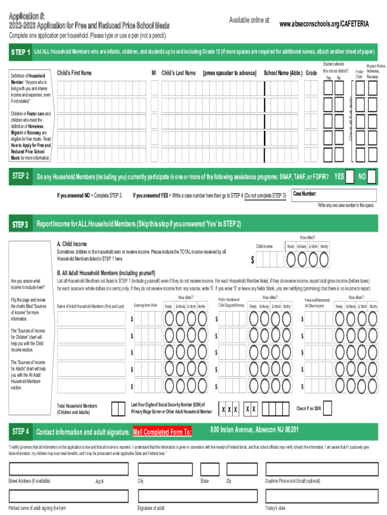 Application #: 20222023 Application for Free and Reduced Price School MealsAvailable online at:www.abseconschools.org/CAFETERIAComplete one application per household. Please type or use a pen (not
