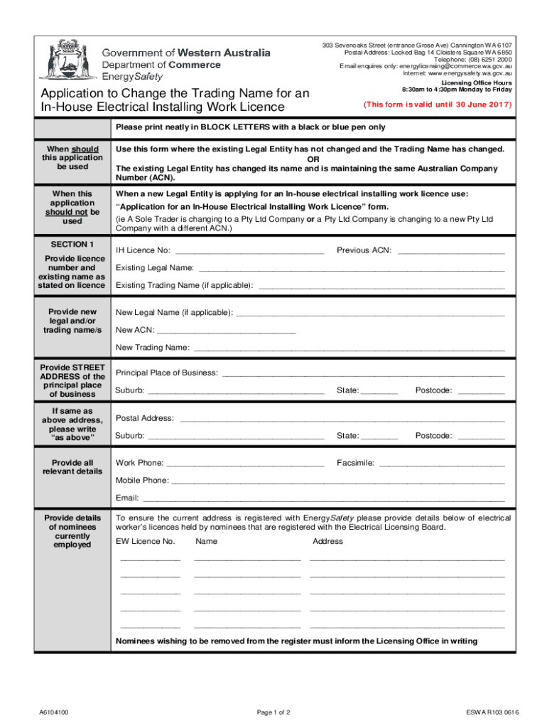 303 Seven oaks Street (entrance Rose Ave) Canning ton WA 6107 Postal Address: Locked Bag 14 Cloisters Square WA 6850 Telephone: (08) 6251 2000 Email inquires only: energylicensing@commerce.wa.gov.au