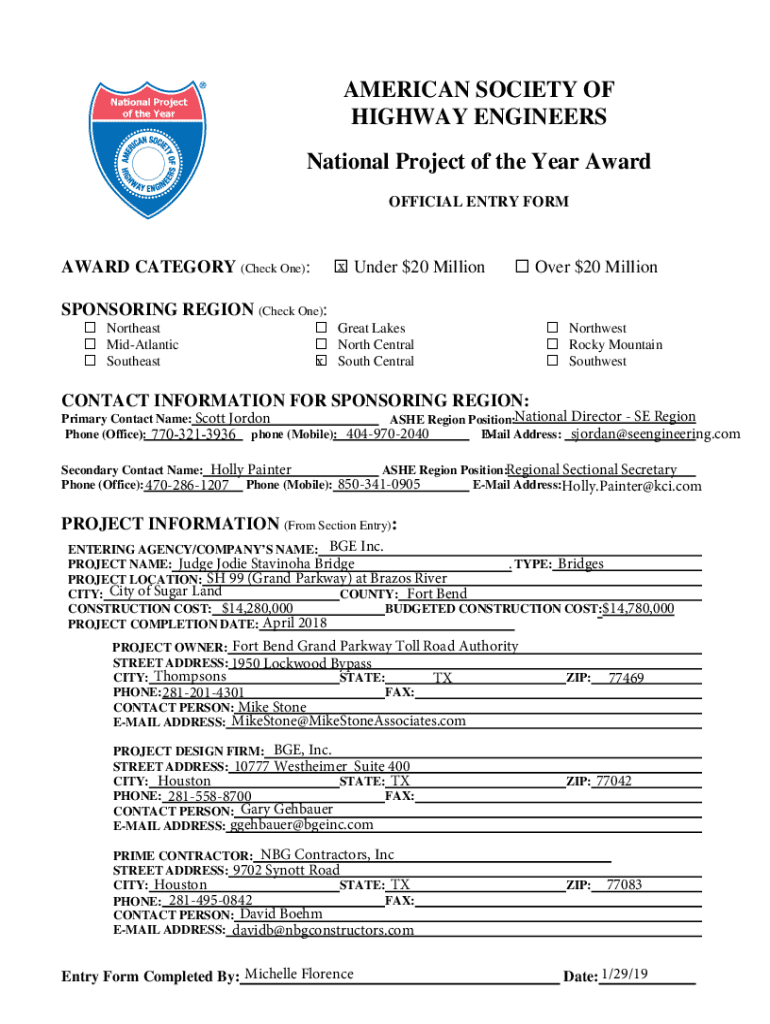 OFFICIAL ENTRY Form Under $20 Million