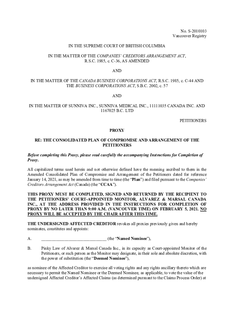 Get the free No. S-2010103 Vancouver Registry IN THE ... - Alvarez & Marsal