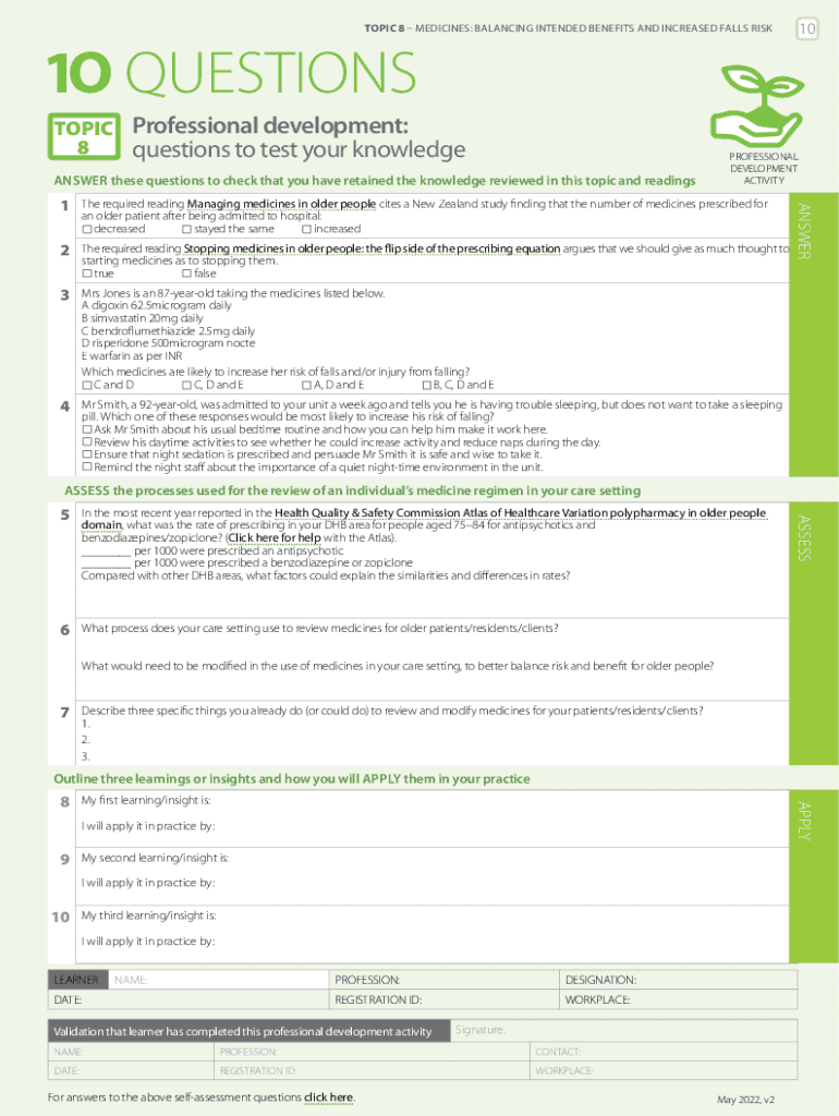 TOPIC 8 Medicines: balancing intended benefits and increased falls risk How you can use Topic81Key messages in Topic82What Topic 8 covers2How older people, polypharmacy and adverse drug events are