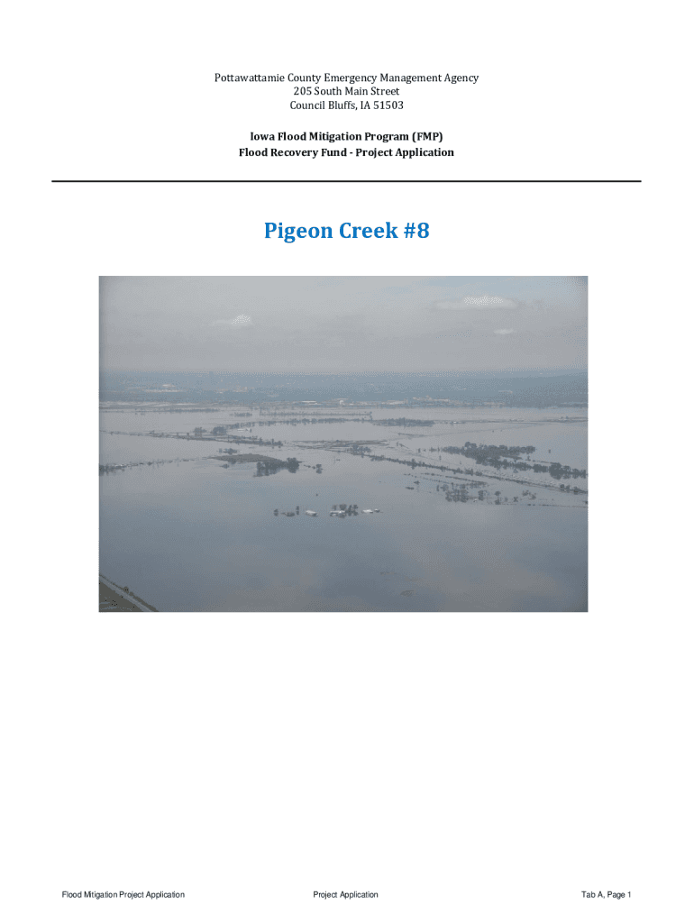 Pottawatomie County Emergency Management Agency 205 South Main Street Council Bluffs, IA 51503 Iowa Flood Mitigation Program (FMP) Flood Recovery Fund Project ApplicationPigeon Creek #8Flood Mitigation