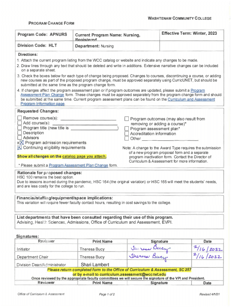 Washtenaw Community CollegeOffice of Curriculum and AssessmentProgram Information ReportHealth SciencesNursing, Registered (APN URS)