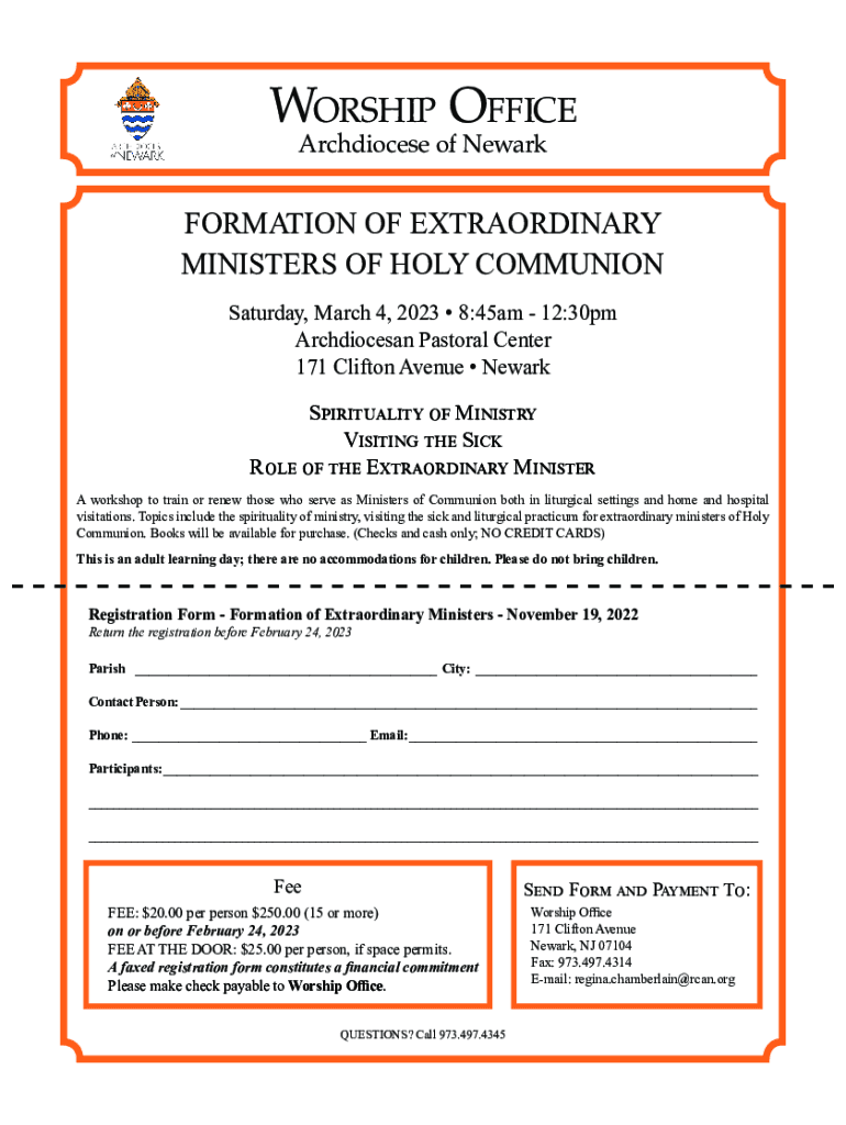 Get the free Extraordinary Ministers of Holy Communion Formation Session