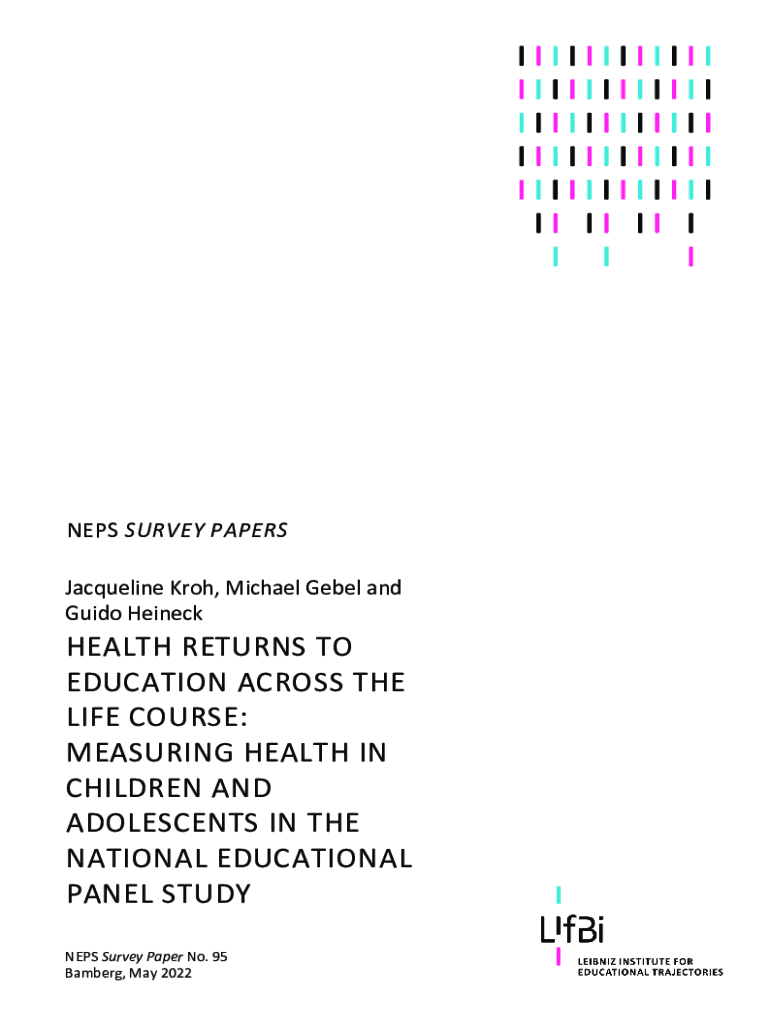 NEWS SURVEY PAPERS Jacqueline Kroc, Michael Rebel and Guido HeineckHEALTH RETURNS TO EDUCATION ACROSS THE LIFE COURSE: MEASURING HEALTH IN CHILDREN AND ADOLESCENTS IN THE NATIONAL EDUCATIONAL PANEL