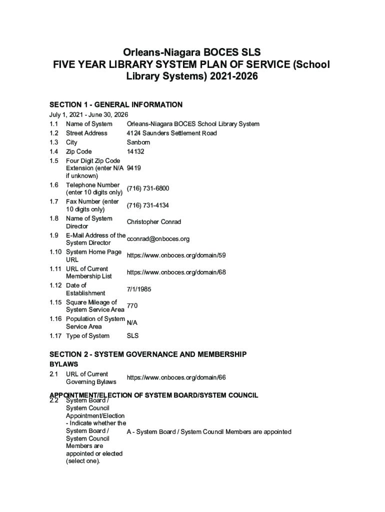 Get the free Orleans-Niagara BOCES SLS FIVE YEAR LIBRARY SYSTEM ...