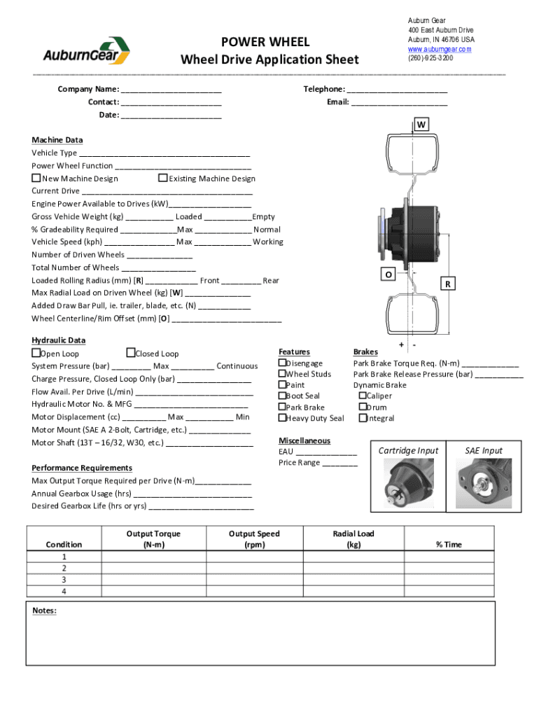 Get the free POWER WHEEL Shaft Drive Application Sheet - Auburn Gear