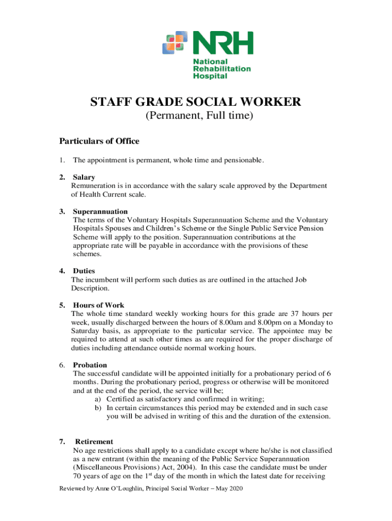 Get the free Staff Grade Social Worker - National Rehabilitation Hospital