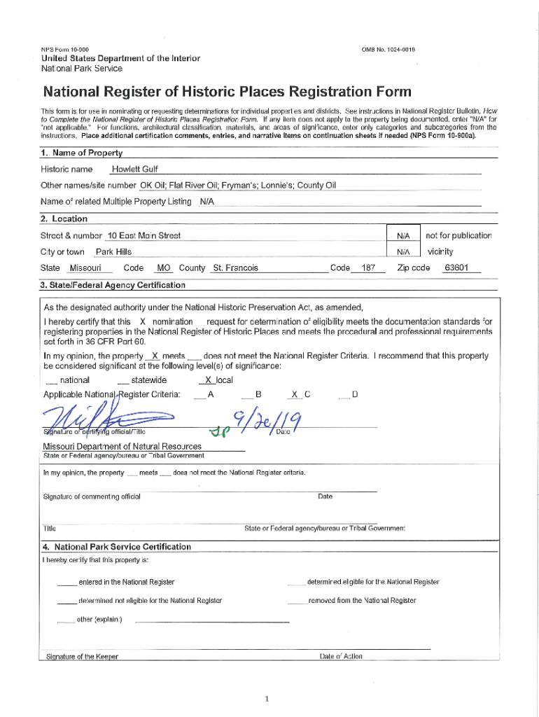How to fill out nfs form 10-900 national