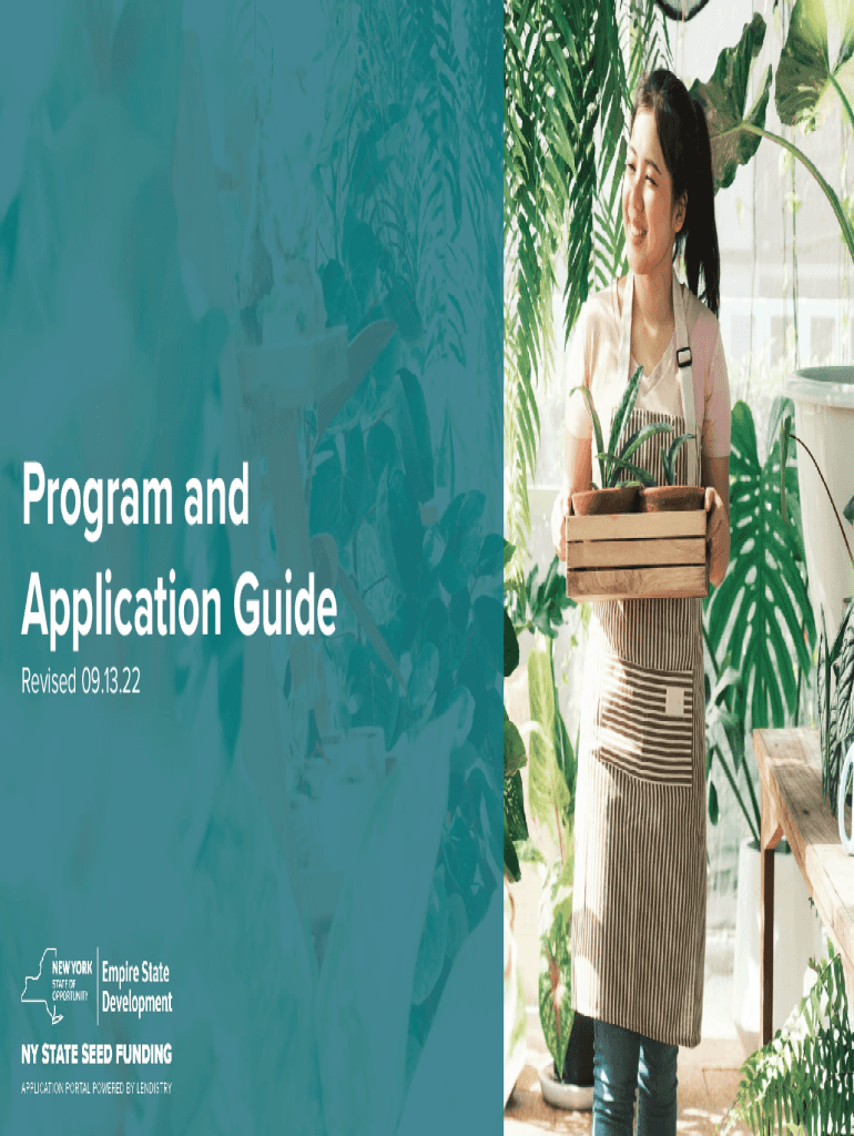Program and Application Guide Revised 09.13.22Program Overview The New York State Seed Funding Grant Program (the Program) was created to provide assistance to early stage small businesses to succeed
