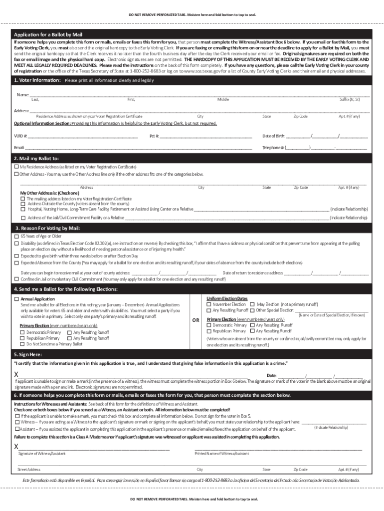 Get the free Application for a Ballot by Mail - Val Verde County - Texas.gov