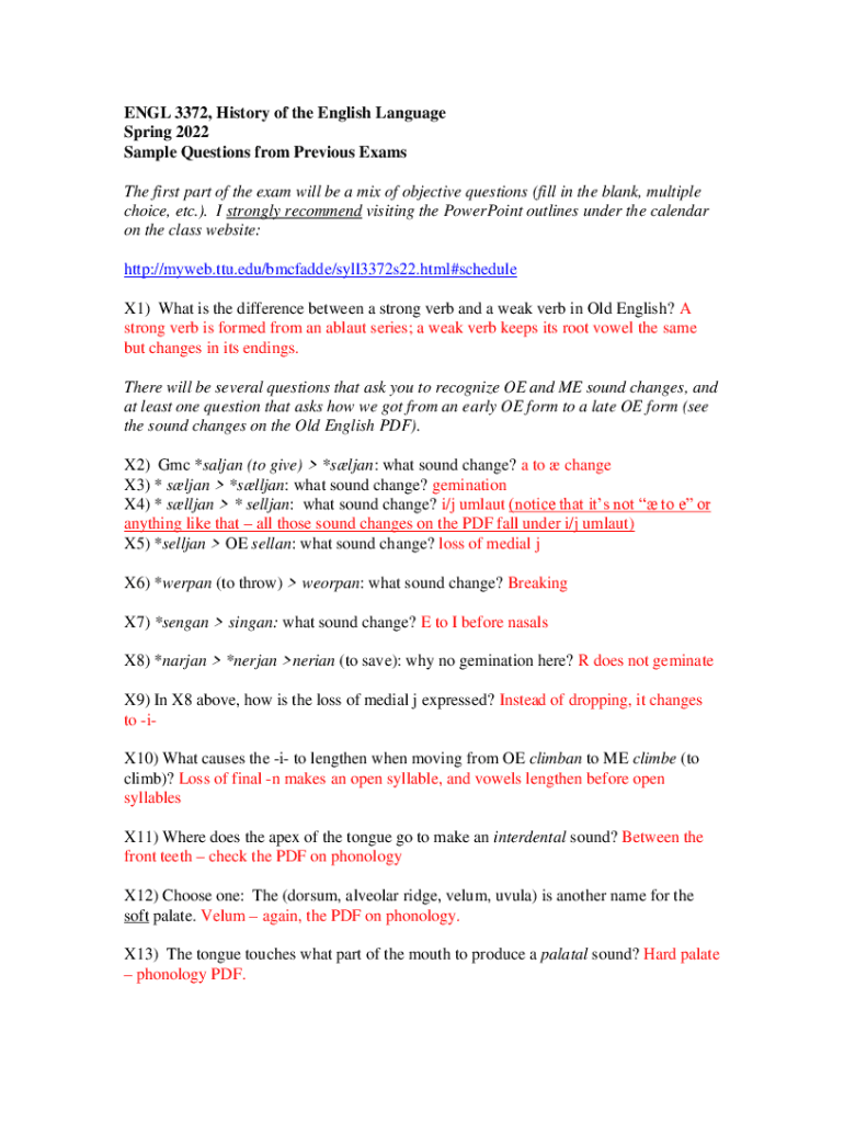 Get the free ENGL 3372, History of the English Language - MyWeb - myweb ttu