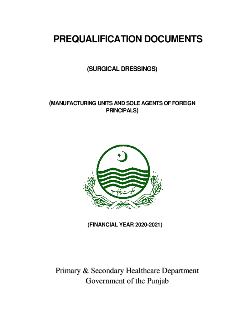 PREQUALIFICATION DOCUMENTS (SURGICAL DRESSINGS)(MANUFACTURING UNITS AND SOLE AGENTS OF FOREIGN PRINCIPALS)(FINANCIAL YEAR 20202021)Primary & Secondary Healthcare Department Government of the PunjabPreQualification