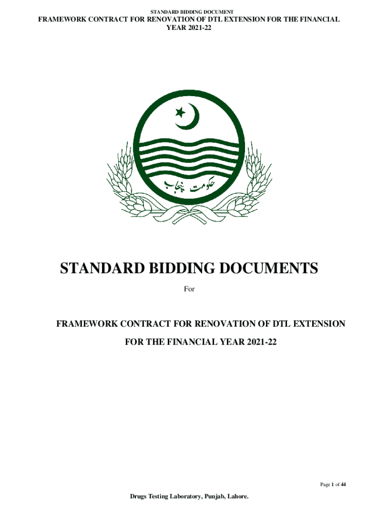 STANDARD BIDDING DOCUMENTFRAMEWORK CONTRACT FOR RENOVATION OF DEL EXTENSION FOR THE FINANCIAL YEAR 202122STANDARD BIDDING DOCUMENTS Framework CONTRACT FOR RENOVATION OF DEL EXTENSION FOR THE FINANCIAL