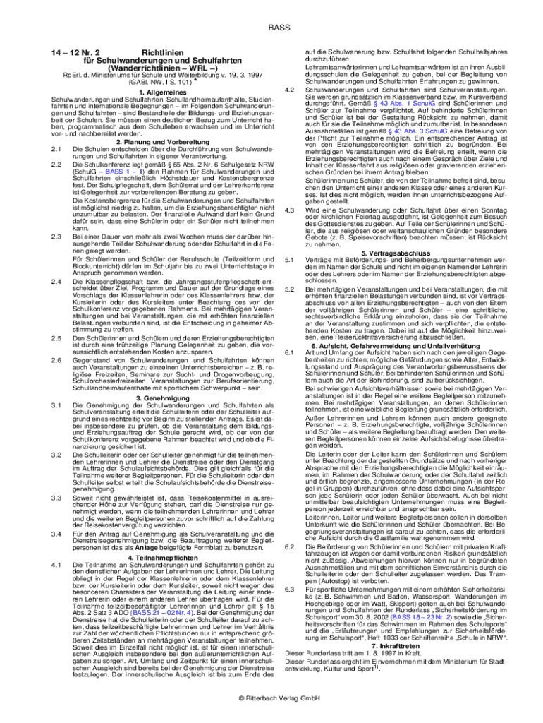 Holen Sie sich kostenlos BASS 1412 Nr. 2 Richtlinien fr Schulwanderungen ... - aragri
