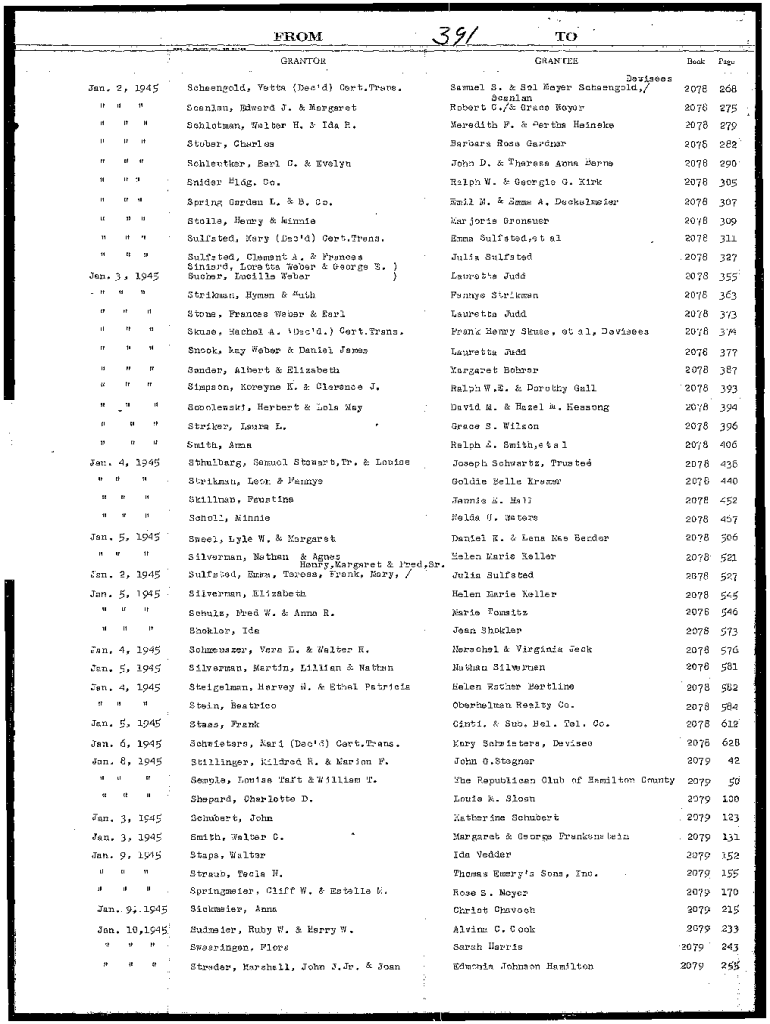 TOF ROM, G\'0. A FLOOR Colt &4343 GRANTEEGRANTORJan. 2, 1945 IIIItiti1111IIII11IIIIIIIIIIIIIIII 11BookPage20782682078275Scanlan, Edward J. & Margaret. Rises Samuel S. & Sol Meyer Schaengold, / Scandal