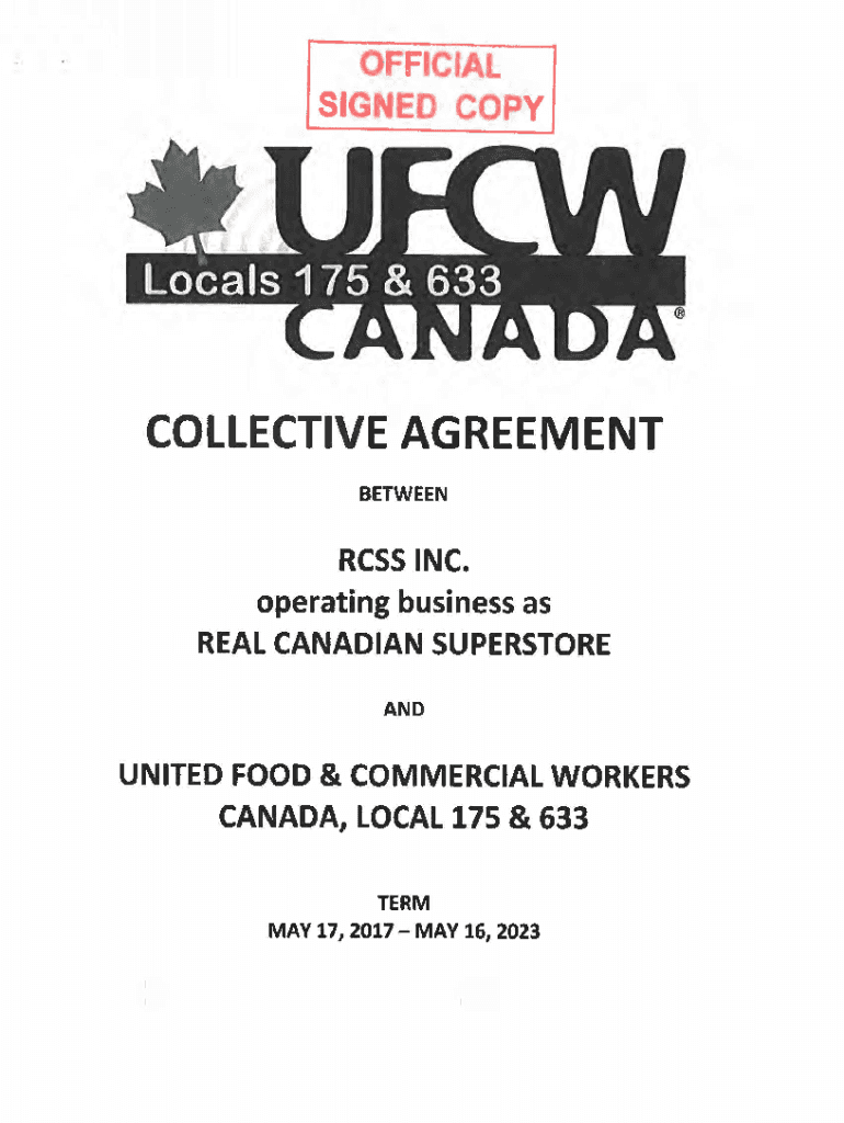 COLLECTIVE AGREEMENT BETWEENNESS INC. operating business as REAL CANADIAN SUPERSTORE INDUCTED FOOD & COMMERCIAL WORKERS CANADA, LOCAL 175 & 633 TERM MAY 17, 2017MAV 16, 2023ARTICLE2. 3. 4. 5. 6. 7.