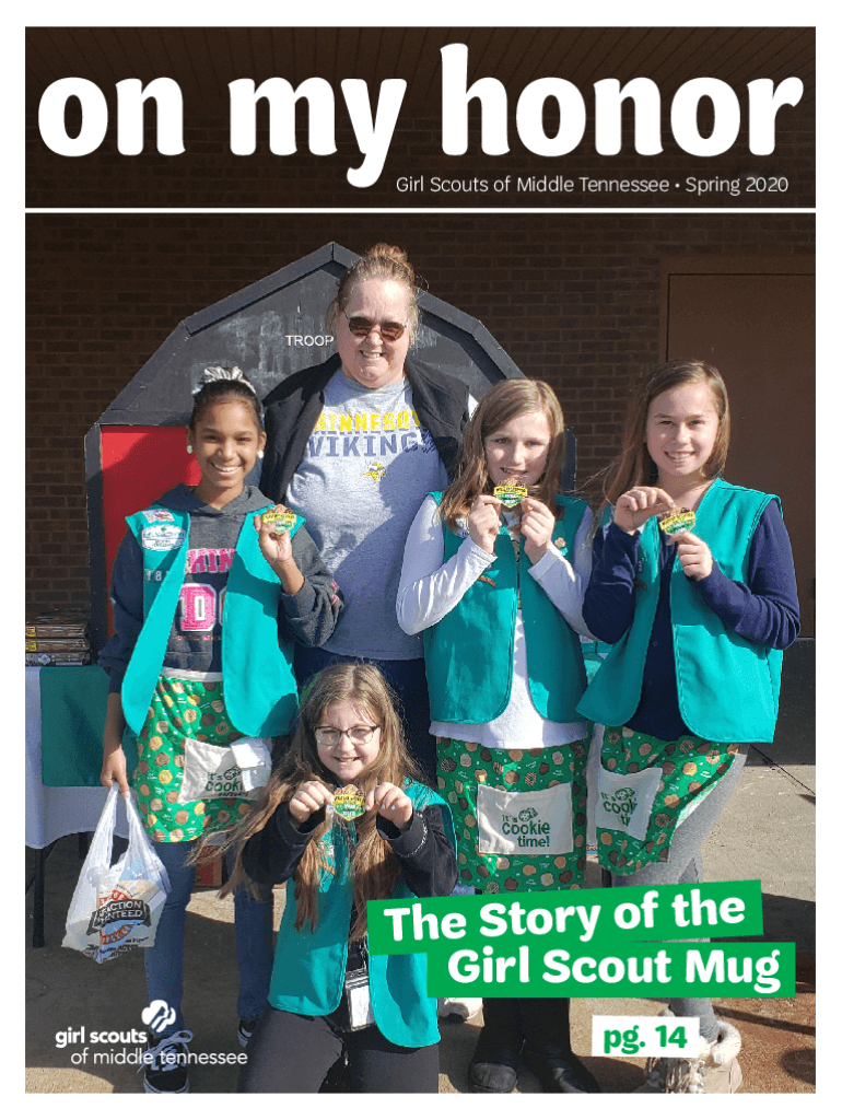 Girl Scouts of Middle Tennessee Spring 2020The Story of the Girl Scout Mug pg. 14On My Honor is a quarterly publication of Girl Scouts of Middle Tennessee. President/CEO Agenda Clark Editor-in-Chief