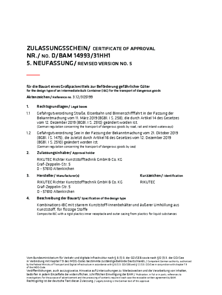 ZULASSUNGSSCHEIN/ CERTIFICATE OF APPROVAL