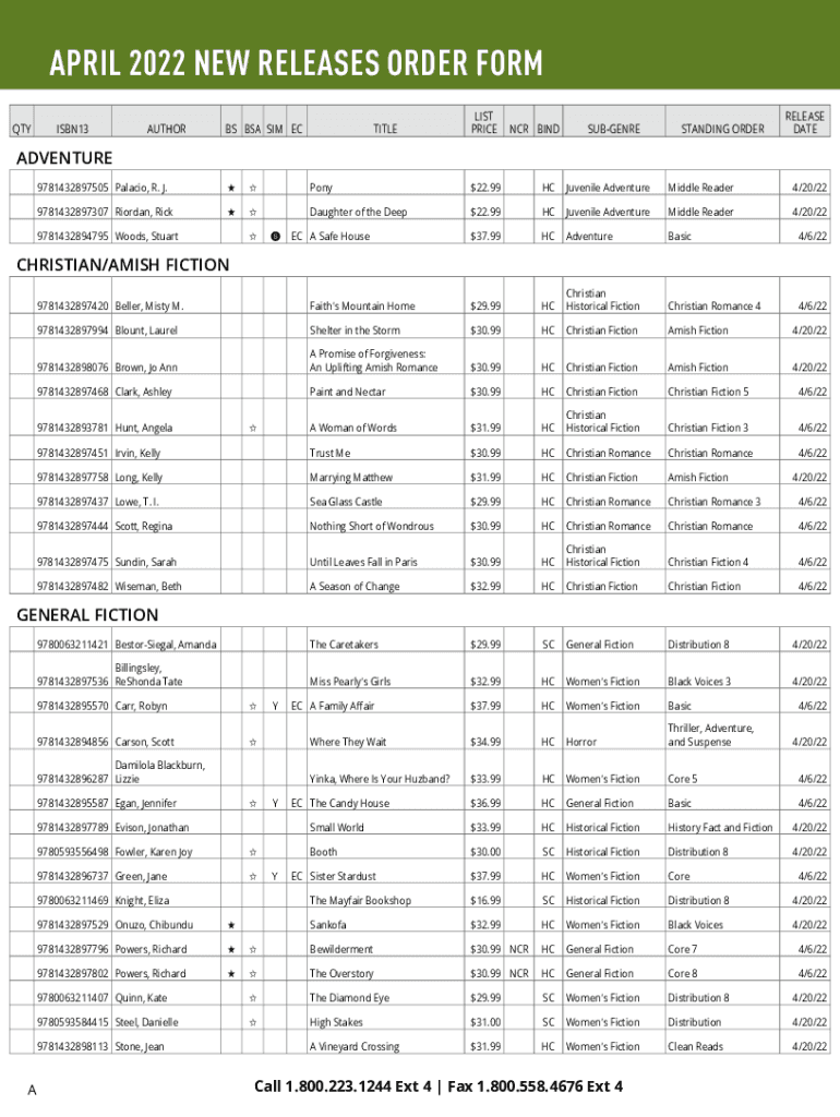 Get the free NOVEMBER 2020 NEW RELEASES ORDER FORM APRIL 2022 ...