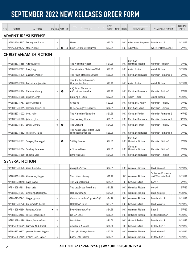 Get the free NOVEMBER 2020 NEW RELEASES ORDER FORM ... - Gale