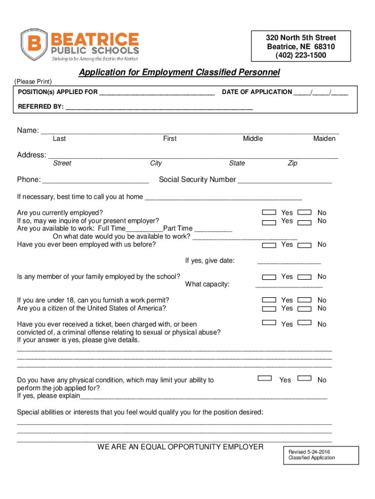 (402) 2231500Application for Employment Classified Personnel