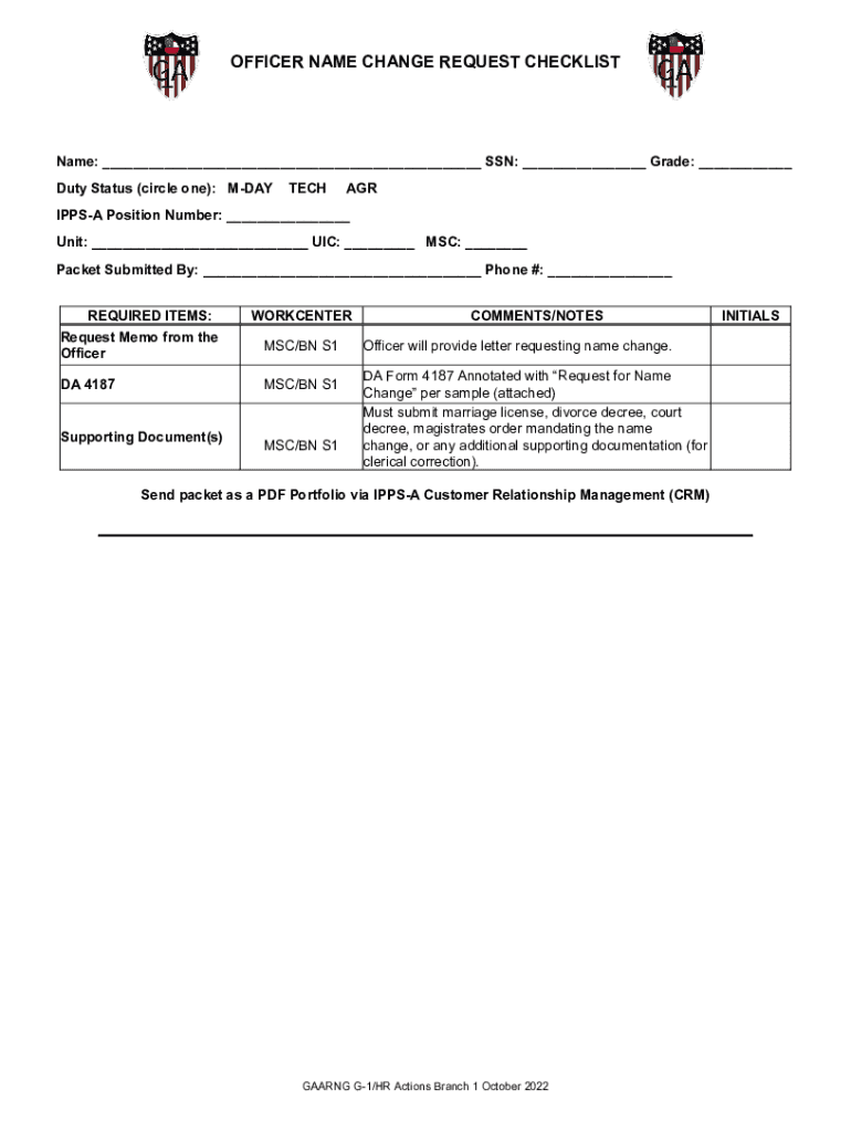 OFFICER NAME CHANGE REQUEST CHECKLISTName: ___ SSN: ___ Grade: ___