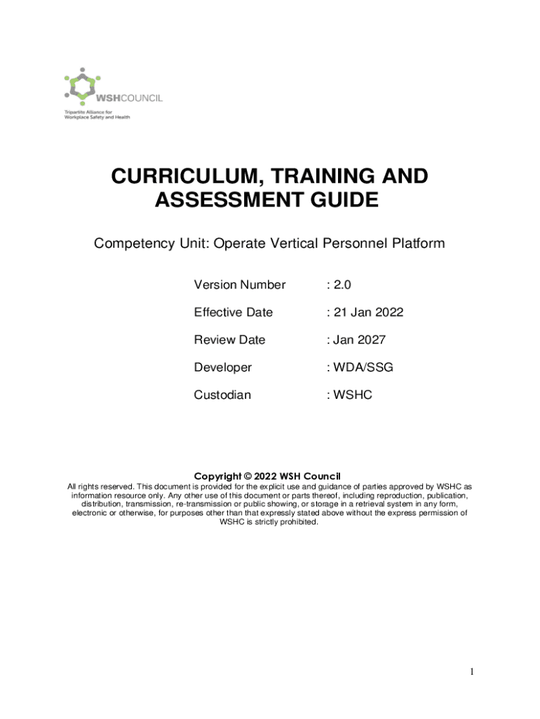Version Number: 2.0Effective Date: 21 Jan 2022Review Date: Jan 2027Developer: DA/Custodian: WSHCCopyright