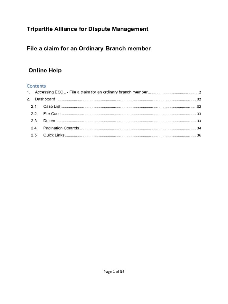 Tripartite Alliance for Dispute Management File a claim for an Ordinary Branch memberOnline Help Contents 1. Accessing ESOL File a claim for an ordinary branch member .................................................