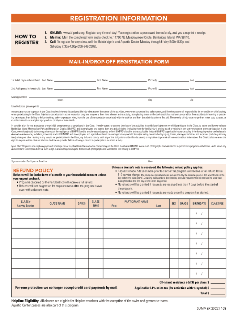 Get the free District FormsBainbridge Island Metro Park & Recreation ...