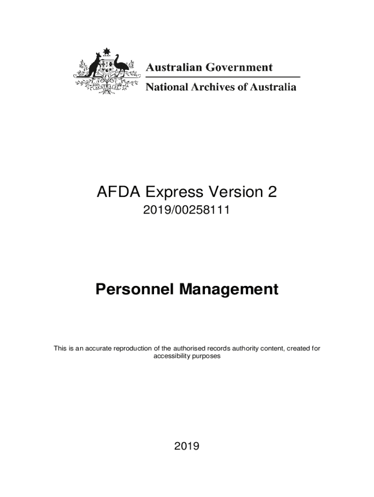 2019/00258111Personnel Managements is an accurate reproduction of the authorized records authority content, created for