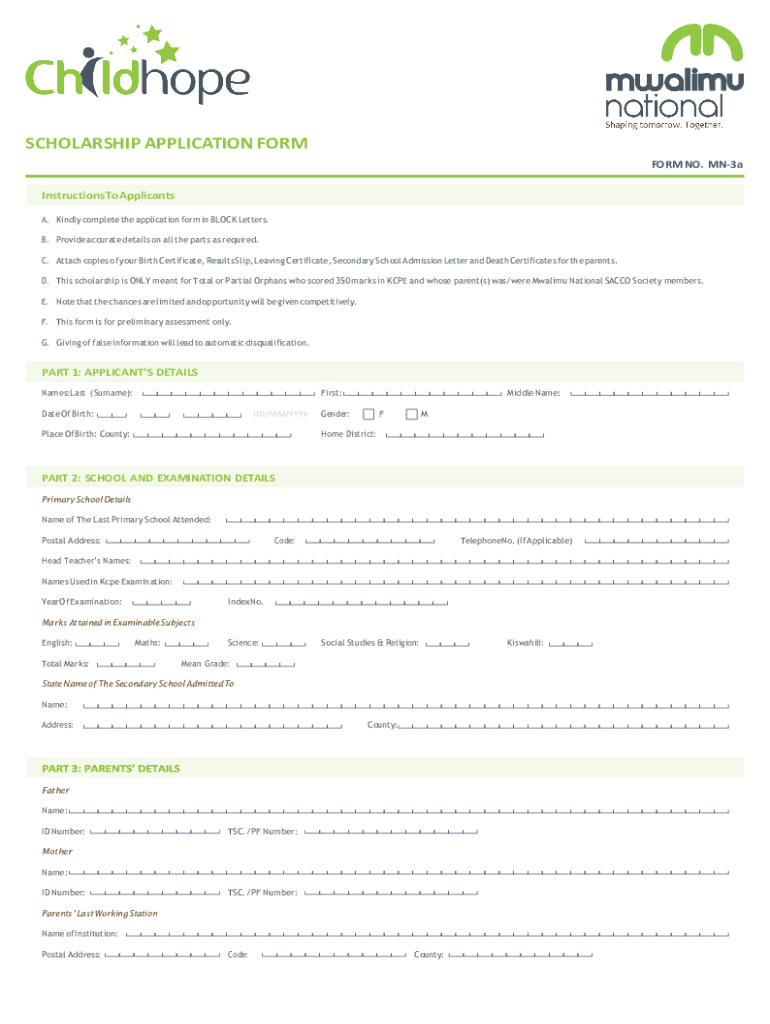 Get the free SCHOLARSHIP APPLICATION FORM - Nairobi