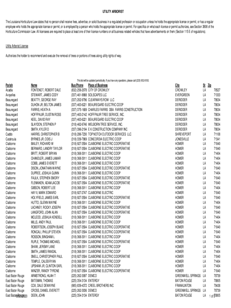 UTILITY ARBORIST The Louisiana Horticulture Law states that no person shall receive fees, advertise, or solicit business in a regulated profession or occupation unless he holds the appropriate license